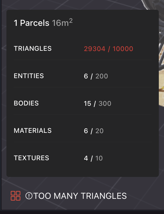 In order to improve performance in the metaverse, we have established a set of limits that every scene must follow. These limits are per-parcel. So the larger the scene, the higher these limits are set.